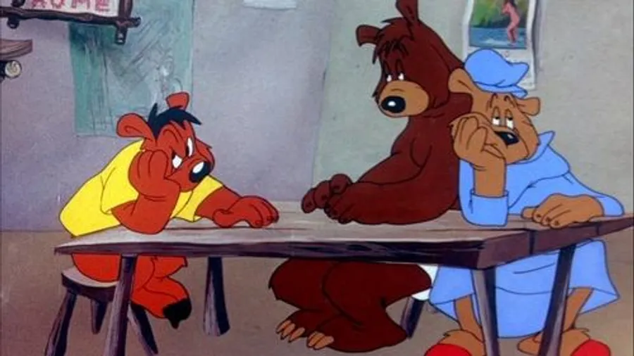 The bears tempt Goldilocks with carrot soup, the scent of which brings Bugs on the scene. Bugs romances Mama bear and she becomes infatuated with him.