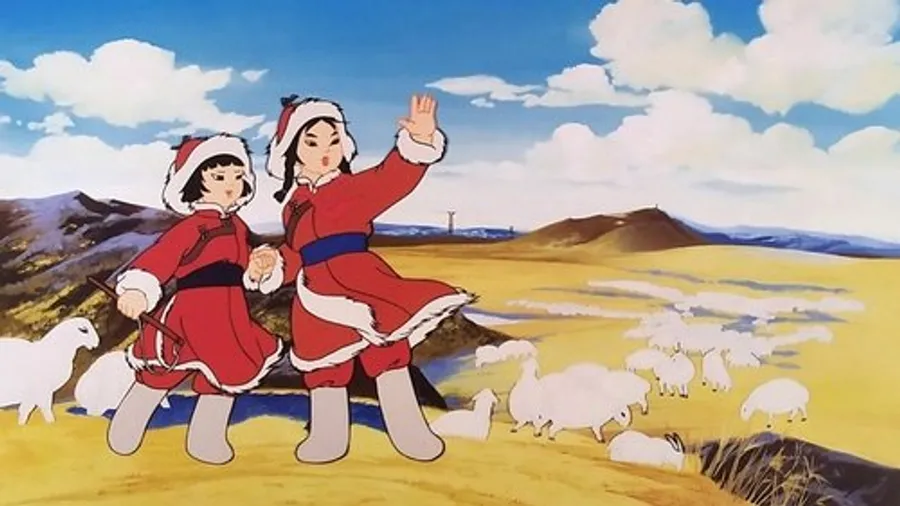 This film was made by Shanghai Animation Film Studio and is based on contemporary events in February, 1964. It’s a retelling of how Mongolian sisters Long Mei and Yurong, ages 11 and 8 respectively, successfully walked nearly 70 kilometers after having been surprised by a blizzard while grazing their father’s sheep. Both girls survived with severe frostbite.
